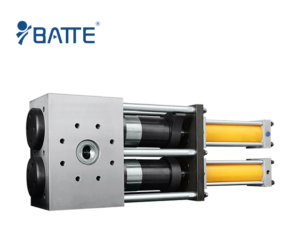 熔噴雙柱不停機換網器出現濾塊推不動,造成這種故障原因有三:一是,換網器安裝不合理,使滑動間隙變化;二是未加潤滑油使滑動面咬傷;三是,濾網槽內有雜物或濾網露出網槽卡死。具體解決辦法是,前兩種情況需要與廠家聯系溝通,第三種情況,可拉回排除,否則拆機排除。